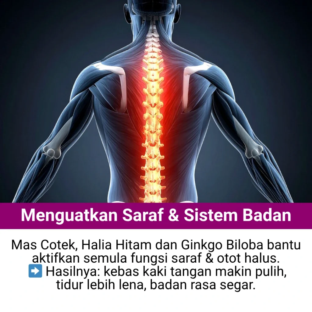 Gabungan 10 bahan aktif herba semula jadi ini diformulasikan secara saintifik untuk bantu melancarkan peredaran darah, mengawal paras gula & kolesterol, serta menguatkan saraf dan tenaga dalaman.