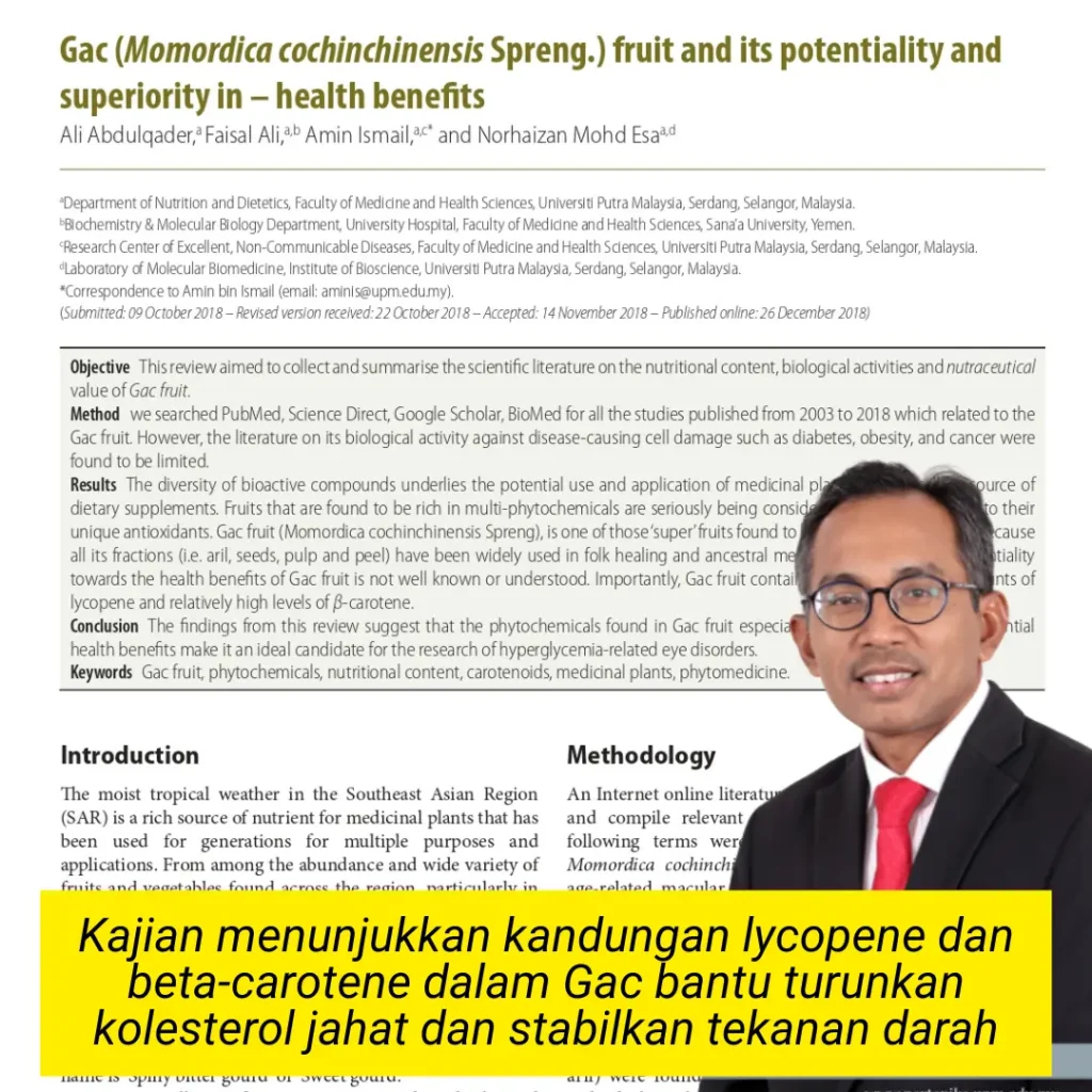 Keberkesanan Nutrigac Plus+ disokong oleh formulasi herba semula jadi yang telah dikaji secara saintifik โ termasuk Gac Fruit, Sacha Inchi, dan Misai Kucing yang terbukti bantu kawal tekanan darah, paras gula & kolesterol.
